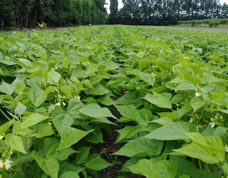 In een veld biologische sperziebonen